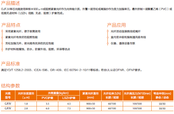 单芯光缆GJFJV-1F